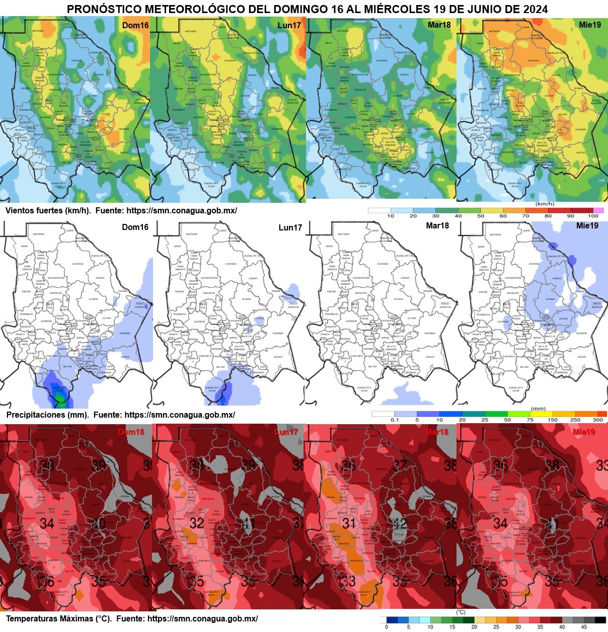 Se esperan rachas de viento de hasta 55 kilómetros por hora(km/h) en Ascensión, Janos, Nuevo Casas Grandes, Galeana, Ignacio Zaragoza, Buenaventura, Gómez Farías, Namiquipa, Bachíniva, Guerrero, Balleza, Nonoava, Cusihuiriachi, Cuauhtémoc, Julimes, Saucillo, Jiménez, Camargo, La Cruz, Coyame y Ojinaga.