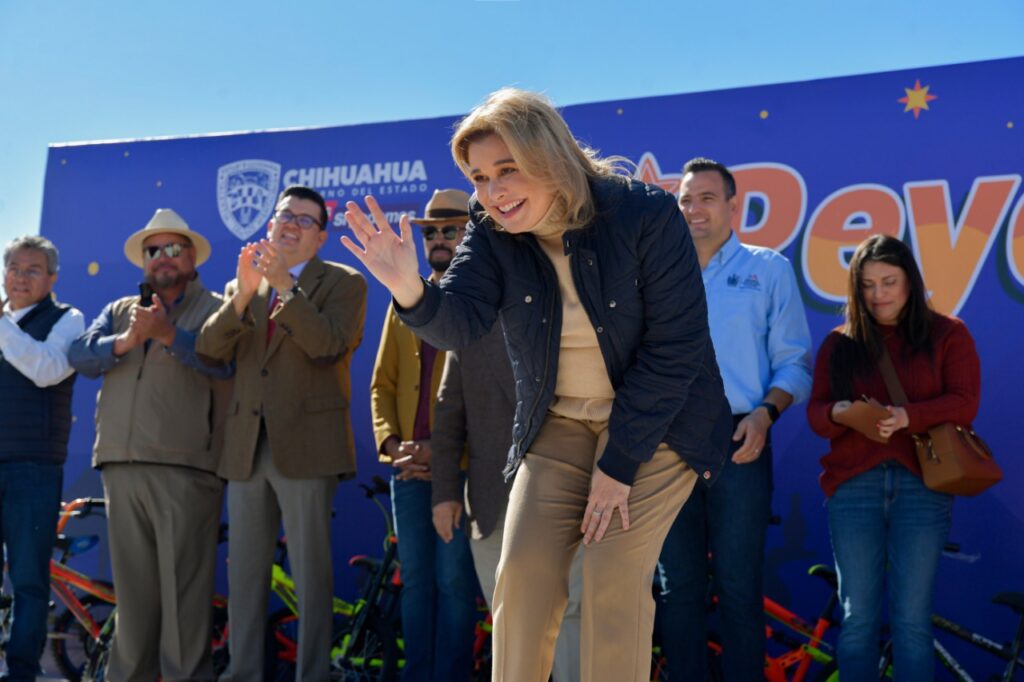 En su mensaje la mandataria reiteró que se sigue trabajando para llevar a cada uno de los municipios de Chihuahua agua drenaje, pavimento y seguridad.