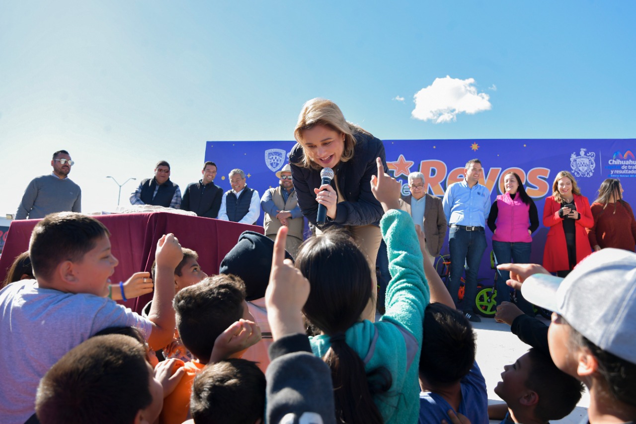 La gobernadora Maru Campos encabezó los festejos en el marco del Día de los Reyes Magos, en la colonia Vistas del Norte en la ciudad de Chihuahua, donde partió la tradicional rosca, entregó regalos a las niñas y niños además de otorgar apoyos a los vecinos del sector.