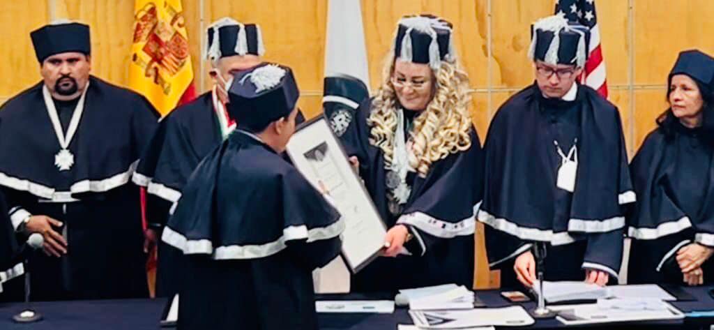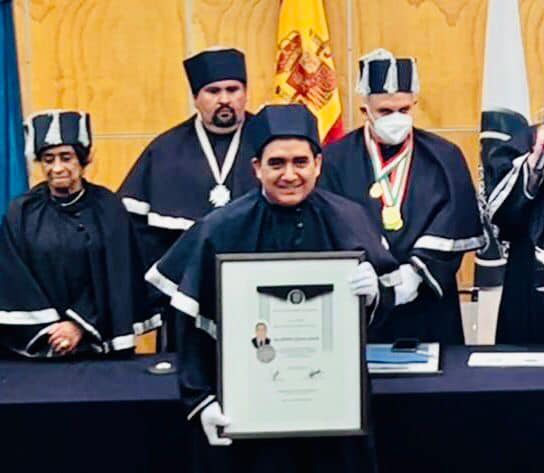 Ciudad de México._a 1 de julio del 2022.- La World University of Science de Washington, DC., y la Universidad Autónoma de México (UNAM) hicieron la entrega del grado de Doctor Honoris Causa al chihuahuense Luis Antonio Garzón Sánchez en reconocimiento por su empuje en la utilización de nuevas tecnologías para impulsar la utilización del primer vehículo eléctrico mexicano, proyecto que se realizó a través de la empresa BioMotion en el 2012.