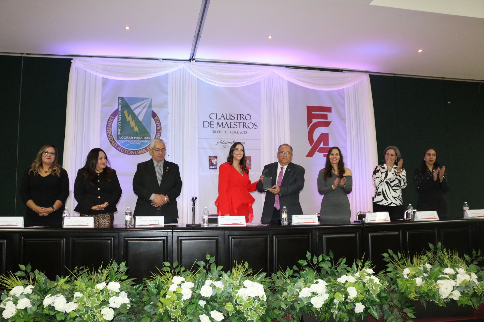 El Rector de la UACH, Mtro. Luis Alfonso Rivera Campos recibió de la Directora de la Facultad de Contaduría y Administración, Dra. Cristina Cabrera Ramos el Distintivo “Compromiso para la Igualdad de Género”, otorgado por la Asociación Nacional de Facultades y Escuelas de Contaduría y Administración, así como el reconocimiento “Alianza Académica”, que le concedió el Centro de Responsabilidad Social para el Desarrollo Sostenible.