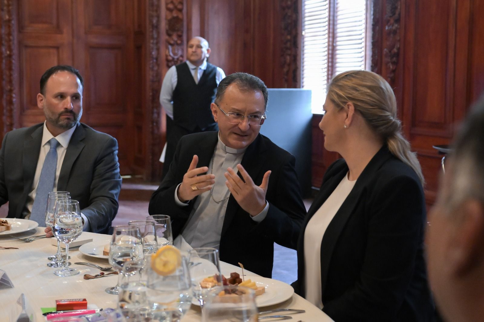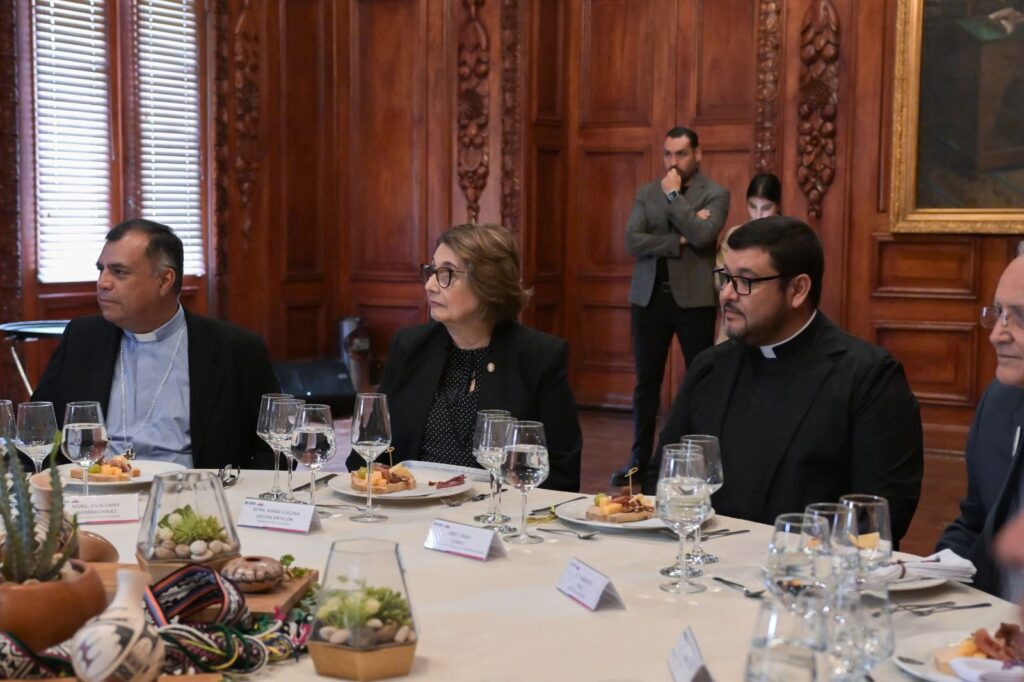 Al hacer uso de la palabra, Monseñor Joseph Spiteri reconoció a la Gobernadora su labor, para trabajar por el bien común en el estado.