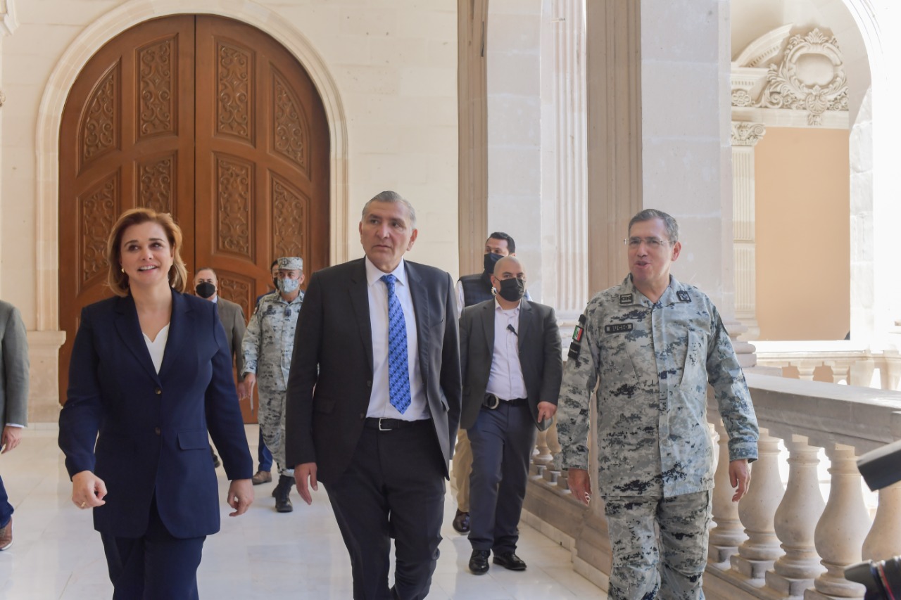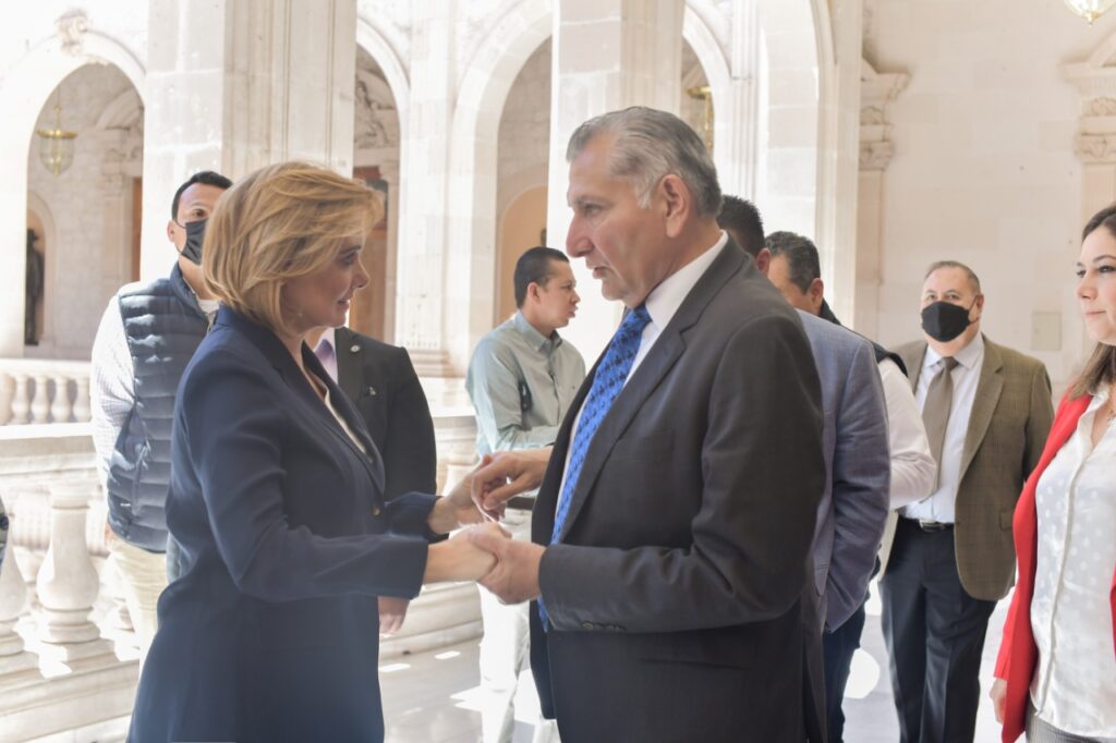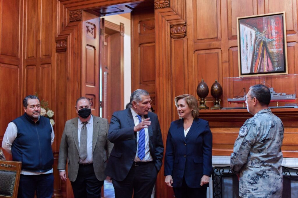 Chihuahua, Chih.-En un encuentro en Palacio de Gobierno de la ciudad de Chihuahua, la Gobernadora del Estado recibió al secretario de Gobernación de la Federación Adán Augusto López Hernández, quien aplaudió las acciones tomadas por el Gobierno del Estado para reforzar la seguridad en la entidad y hacer que abandone el top 3 de los estados con más violencia en el país.
