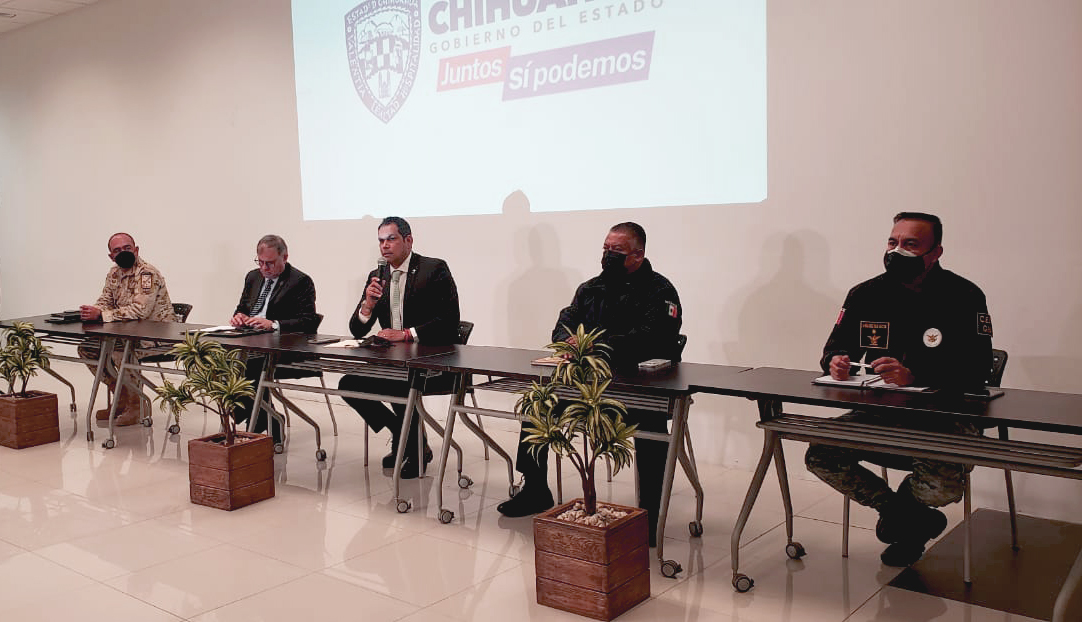 En compañía al Fiscal General; al secretario de Seguridad Pública del Estado; estuvieron presentes el secretario de seguridad pública municipal de Juárez, Omar Muñoz Morales; Marcos Gastelum, representante de la SEDENA y Victorianos Fernández Mondragón, coordinador estatal de la Guardia Nacional, quien aseguró que hay una acción objetiva a través de la presencia de la Guardia Nacional y la SEDENA y que se continúa con los operativos de seguridad tales como Juntos por Juárez y con detenciones.