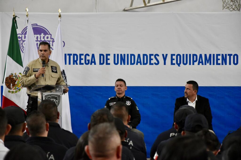 Al dirigirse a los elementos de las policías municipales, el secretario reconoció su labor y afirmó que este nuevo equipamiento es una muestra del respeto y respaldo hacia ellos, al tiempo que reafirmó el compromiso del gobierno estatal por brindar las condiciones necesarias para protegerse y proteger a la ciudadanía.