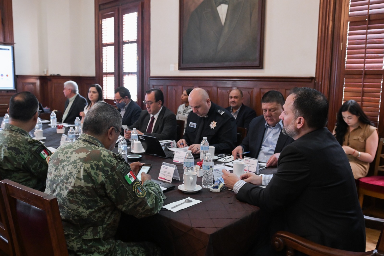 Integrantes de la Mesa de Coordinación para la Construcción de Paz, se reunieron esta mañana en Palacio de Gobierno, para dar seguimiento puntual a las estrategias que se implementan en materia de seguridad en la entidad.