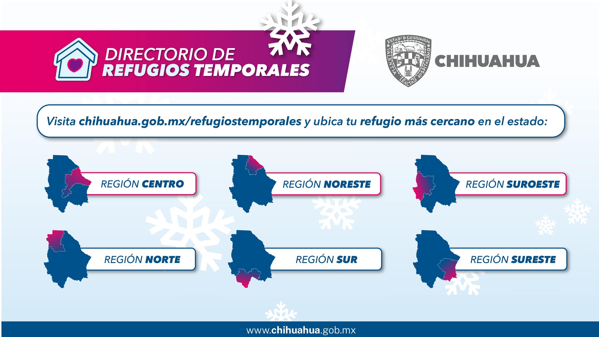 Debido a las bajas temperaturas que se han presentado en todo el estado, especialmente en la zona serrana, el Gobierno del Estado dio a conocer que actualmente se encuentran habilitados 398 refugios temporales para que personas en situación vulnerable puedan hacer uso de ellos y eviten estar en la intemperie cuando se registran bajas temperaturas.
