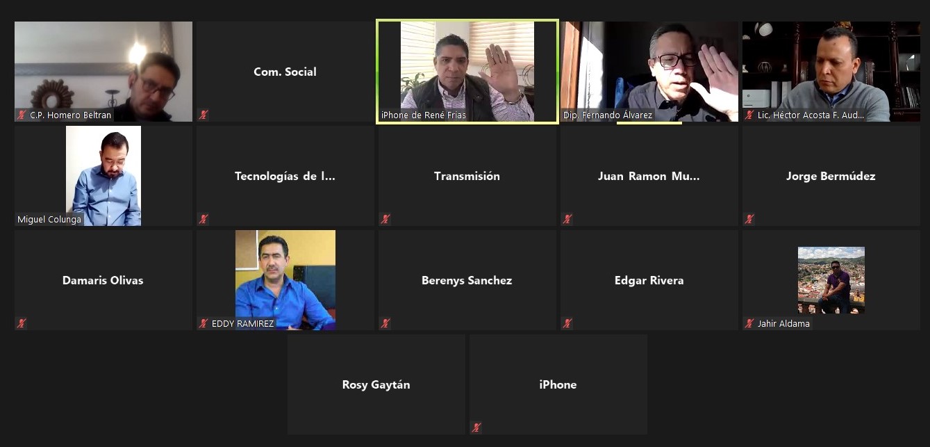 Esta mesa de trabajo se realizó mediante acceso remoto y/o virtual y en la que estuvieron presentes las y los legisladores: Rosa Isela Gaytán Díaz, Miguel Colunga Martínez, Fernando Álvarez Monje y René Frías Bencomo, así como asesores de la comisión y equipo técnico.
