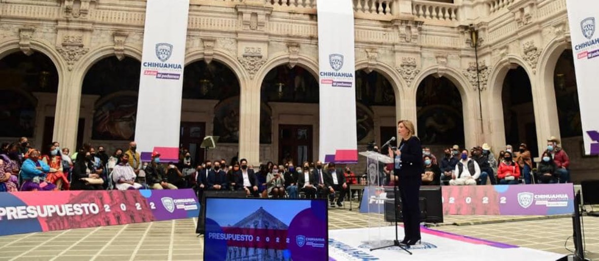 Desde Palacio de Gobierno en la capital del estado, la Gobernadora Maru Campos, presentó a la ciudadanía chihuahuense el presupuesto correspondiente al ejercicio del año 2022, con el que el Gobierno del Estado trabajará para convertir en resultados el bien de todas y todos los chihuahuenses.