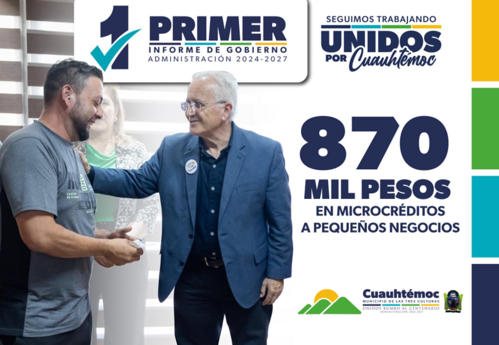 Cd. Cuauhtémoc, Chih.- En este primer año de Administración del alcalde Beto Pérez, a través de la Dirección de Fomento Económico y Turístico, se han entregado un total de $870,000.00 en pequeños financiamientos a mujeres, hombres y personas con discapacidad.