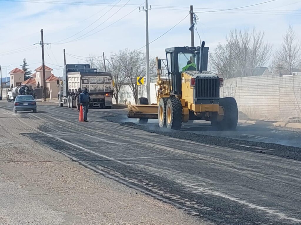 Cuauhtémoc, Chih.-La Dirección de Obras Públicas informa que se está llevando a cabo la aplicación de una pequeña capa de asfalto para la renivelación de la Vialidad Venezuela.