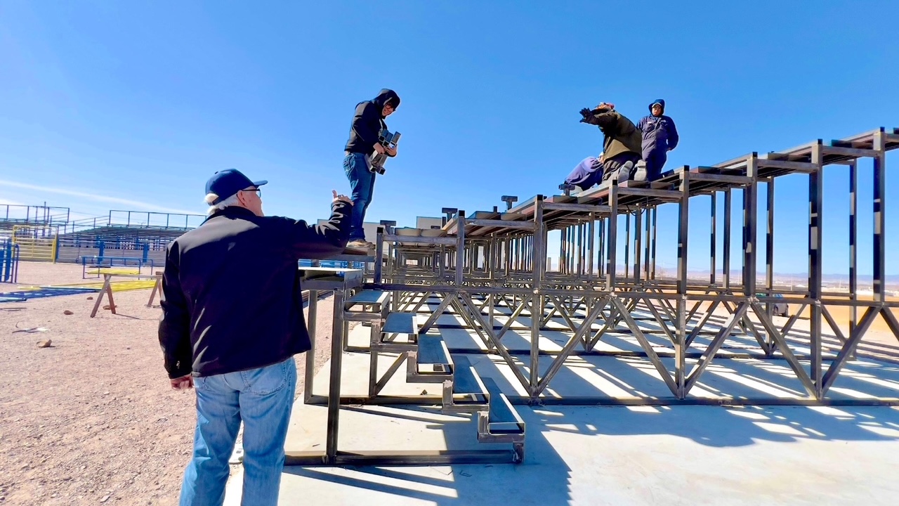 Cuauhtémoc, Chih.-La construcción de la Arena de Rodeo en ciudad Cuauhtémoc muestra a este momento un 95 por ciento de avances, informó el alcalde Beto Pérez, quien realizó una visita de supresión al sitio.