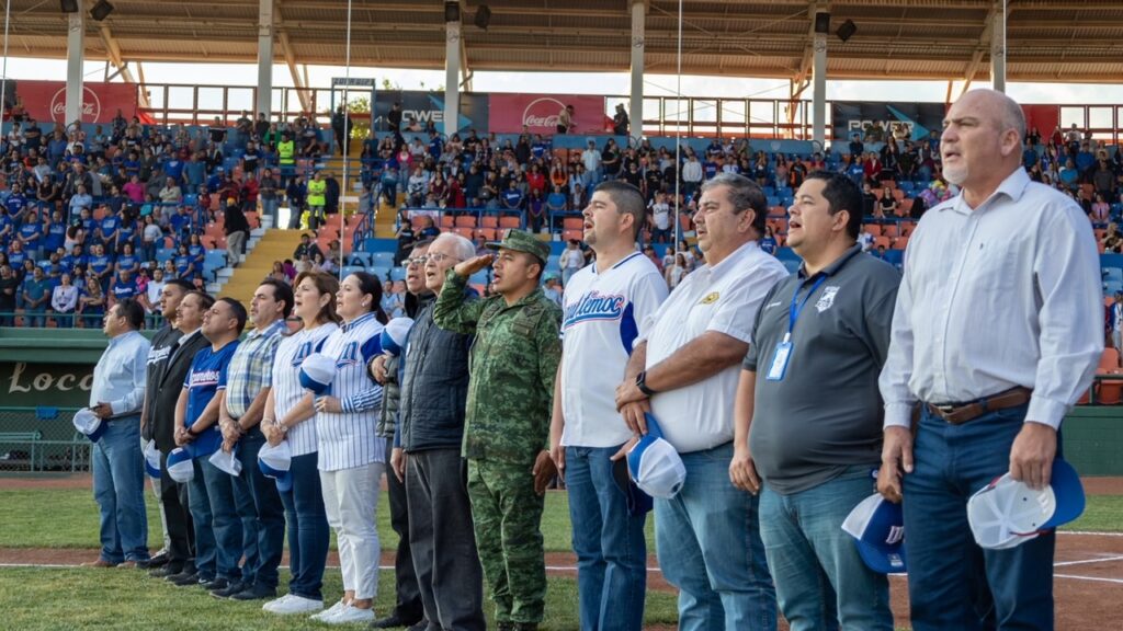 Cd. Cuauhtémoc, Chih.- El alcalde Beto Pérez dio la declaratoria inaugural del Campeonato Estatal de Beisbol 2023, en lo que significó el primer encuentro de los Manzaneros de Cuauhtémoc en casa: el “Gran Estadio Cuauhtémoc”.