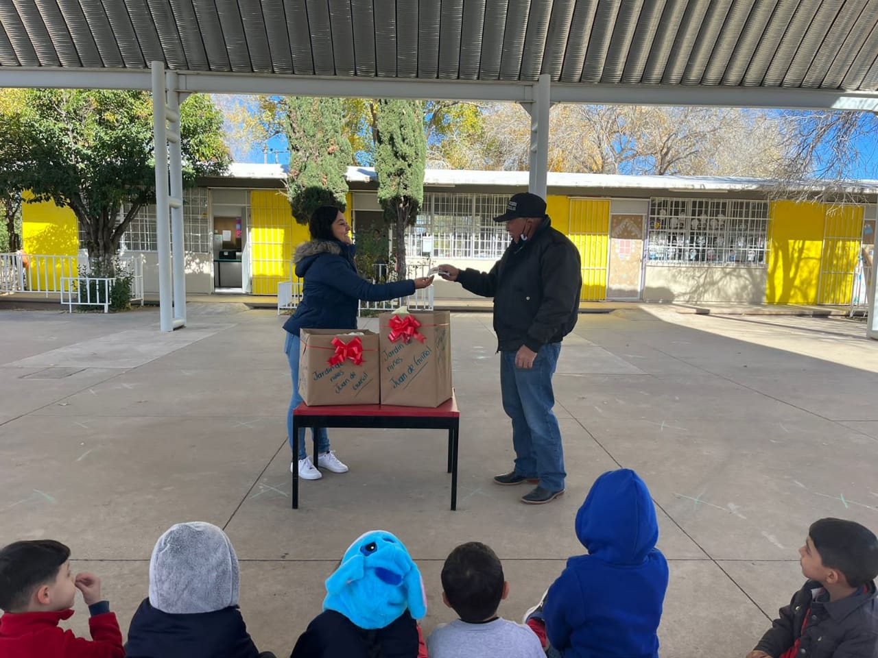 Cuauhtémoc, Chih.-Este día, el Guardia Escolar Manuel Chávez Olivas, que está al cuidado del jardín de niños Juan de Guiñol, fue sorprendido por alumnos y maestros, quienes le regalaron una importante despensa como agradecimiento por la labor que realizan a favor de su comunidad.
