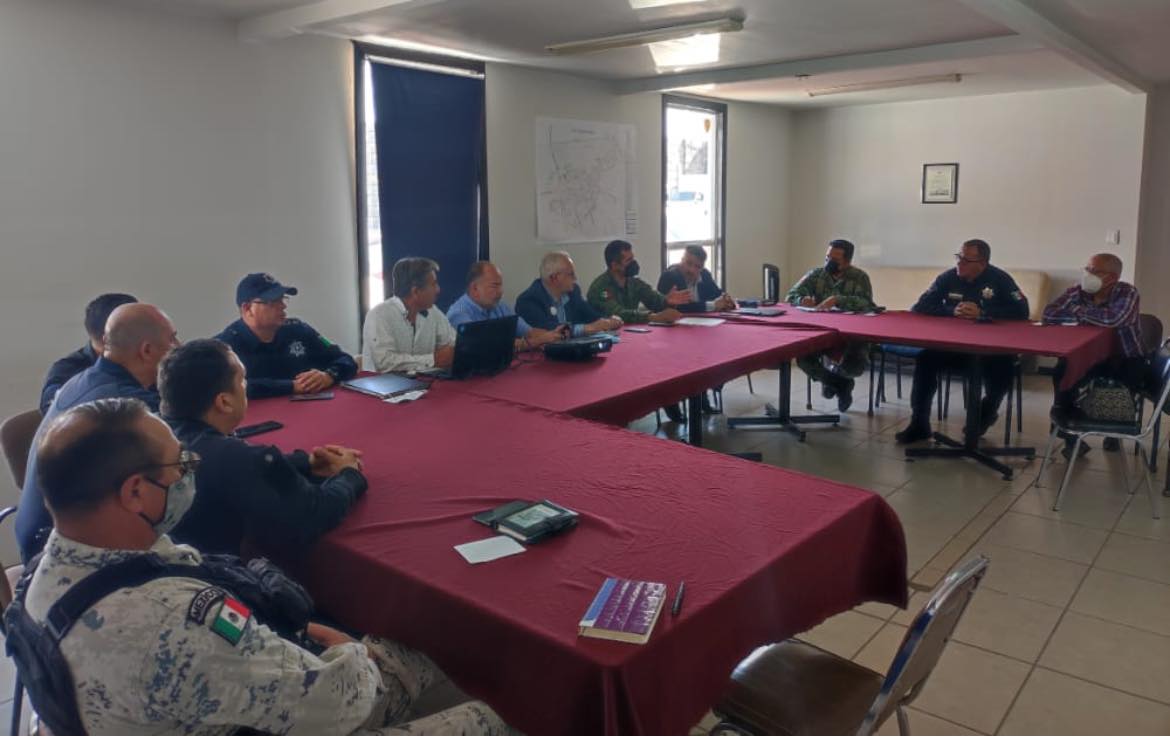 Cuauhtémoc, Chih.-Con la presencia del General de Brigada Alfredo Salgado Vargas y jefes y comandantes de las corporaciones municipales, estatales y federales, se analizan la estrategia de coordinación ante los hechos violentos de ayer domingo.