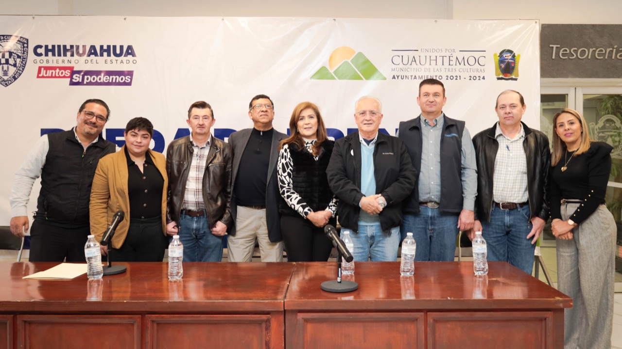 Cd. Cuauhtémoc, Chih.- El presidente municipal Beto Pérez dio la bienvenida al secretario de Obras Públicas, Carlos Aguilar García, quien a nombre de la gobernadora Maru Campos anunció un proyecto de modernización del corredor comercial, en una primera etapa.