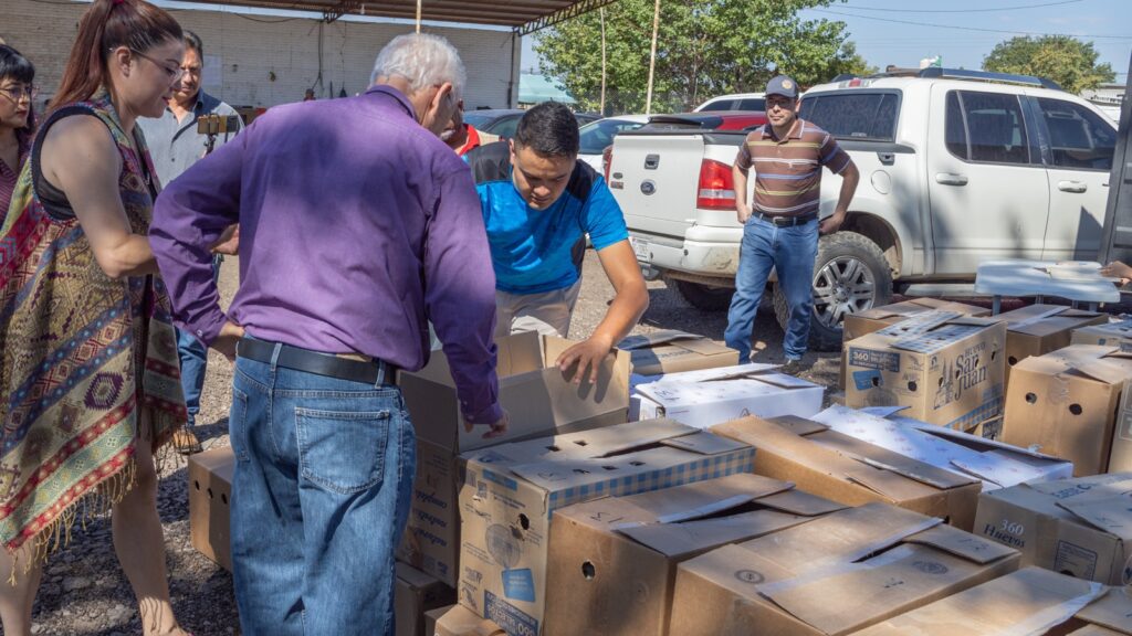 Cd. Cuauhtémoc, Chih.- El presidente municipal Beto Pérez encabezó arranque del programa “Producción de Huevo de Traspatio”, en beneficio de 40 familias de todo el municipio, principalmente de comunidades, quienes recibieron paquetes de 50 pollitas de alta postura, cuya inversión total asciende a los 260 mil pesos.