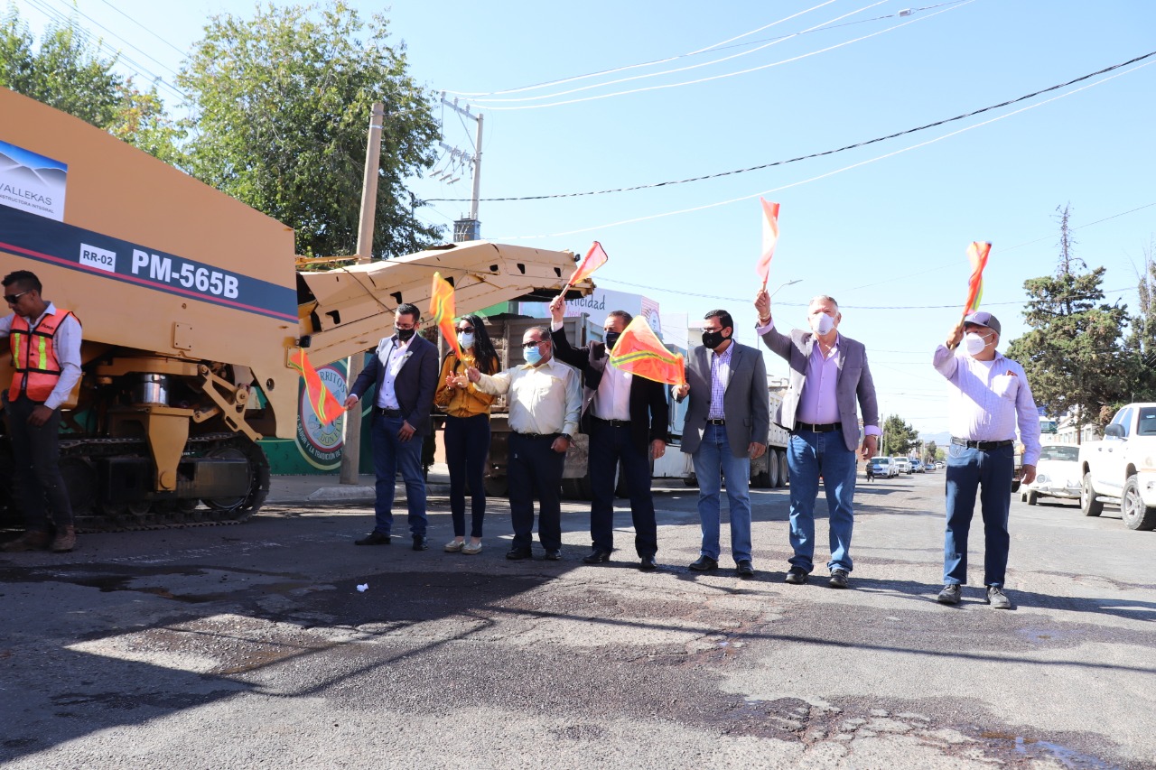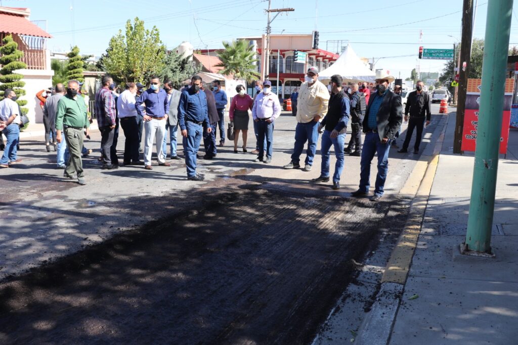 Cuauhtémoc, Chih.-El Presidente Municipal de Cuauhtémoc, Romeo Antonio Morales Esponda, acompañado del Secretario del Ayuntamiento, Francisco Sáenz Soto, así como del Director de Obras Públicas, Gustavo Prieto Villagrán, funcionarios, regidores y líderes de organismos empresariales, dio el banderazo de arranque de la segunda etapa de rehabilitación de pavimento de asfalto que se habrá de llevar a cabo en 75 mil metros cuadrados de calles deterioradas en la cabecera municipal, así como en los seccionales Anáhuac y Lázaro Cárdenas.