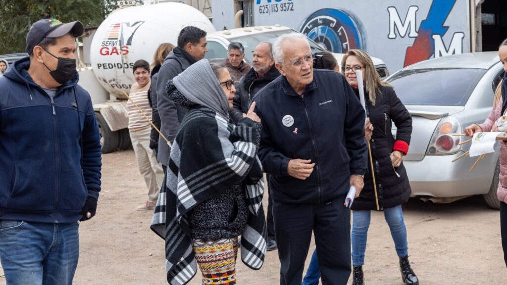 Cd. Cuauhtémoc, Chih.- El presidente municipal Beto Pérez y el director regional del Gobierno de México, Óscar Leos, encabezaron los banderazos de arranque a dos pavimentaciones que tendrán una inversión de poco más de 4 millones de pesos.