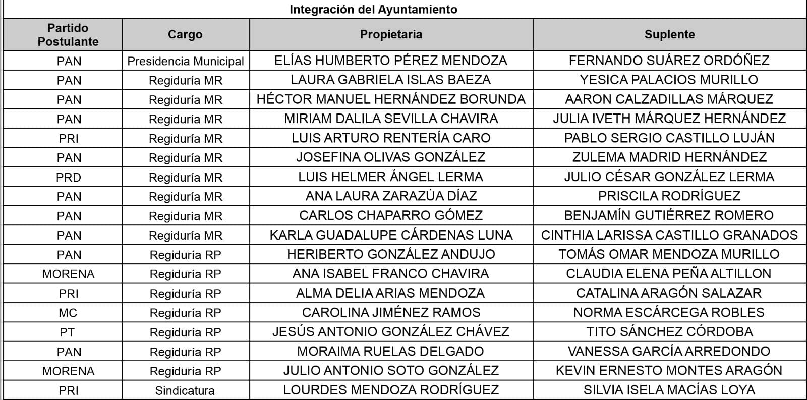 La integración del Ayuntamiento se lleva a cabo conforme a la voluntad expresada por la ciudadanía en las urnas, cumpliendo con los criterios de paridad de género y de acciones afirmativas.