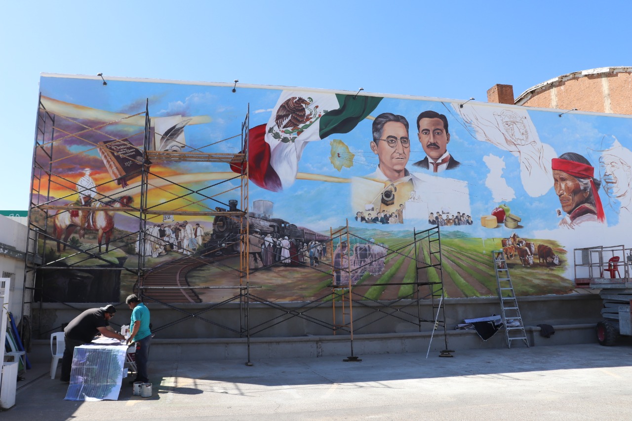 La obra del mural Avance Histórico de Cuauhtémoc, el cual quedará plasmado en una pared perimetral del estacionamiento del Palacio Municipal, se encuentra en un 70 por ciento de avance, por lo que se prevé tenerlo concluido el día 30 de noviembre para poder inaugurarlo el próximo 1 de diciembre.