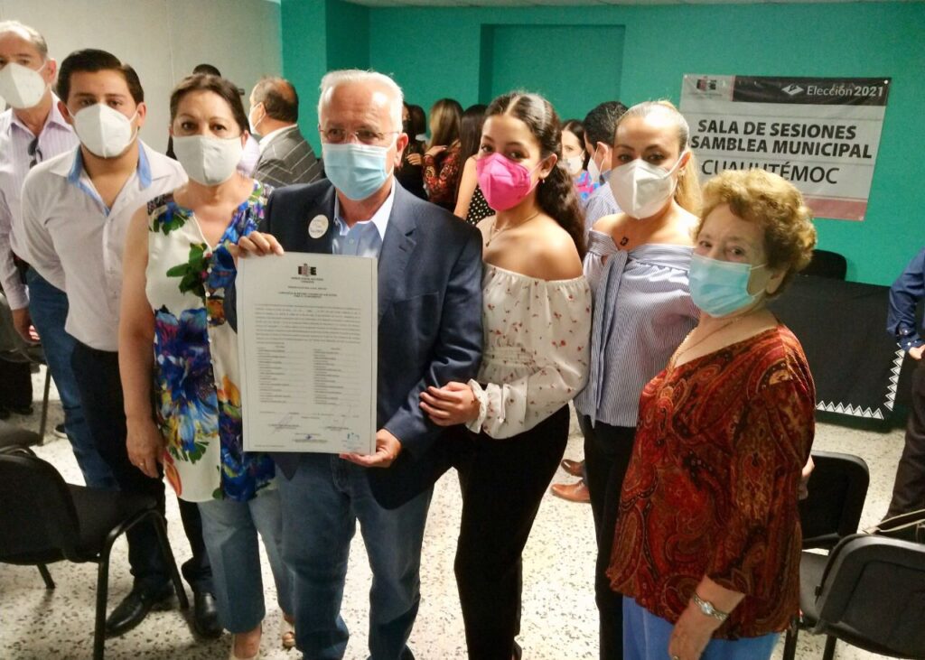 Manifestó agradecimientos a su familia; a Miguel Holguín, su suplente; a la coordinación de campaña y todos los que trabajaron en ella; también a los medios de comunicación, por su importante labor en un proceso atípico; y particularmente a todos los cuauhtemenses que abrieron las puertas de su casa a la fórmula azul.