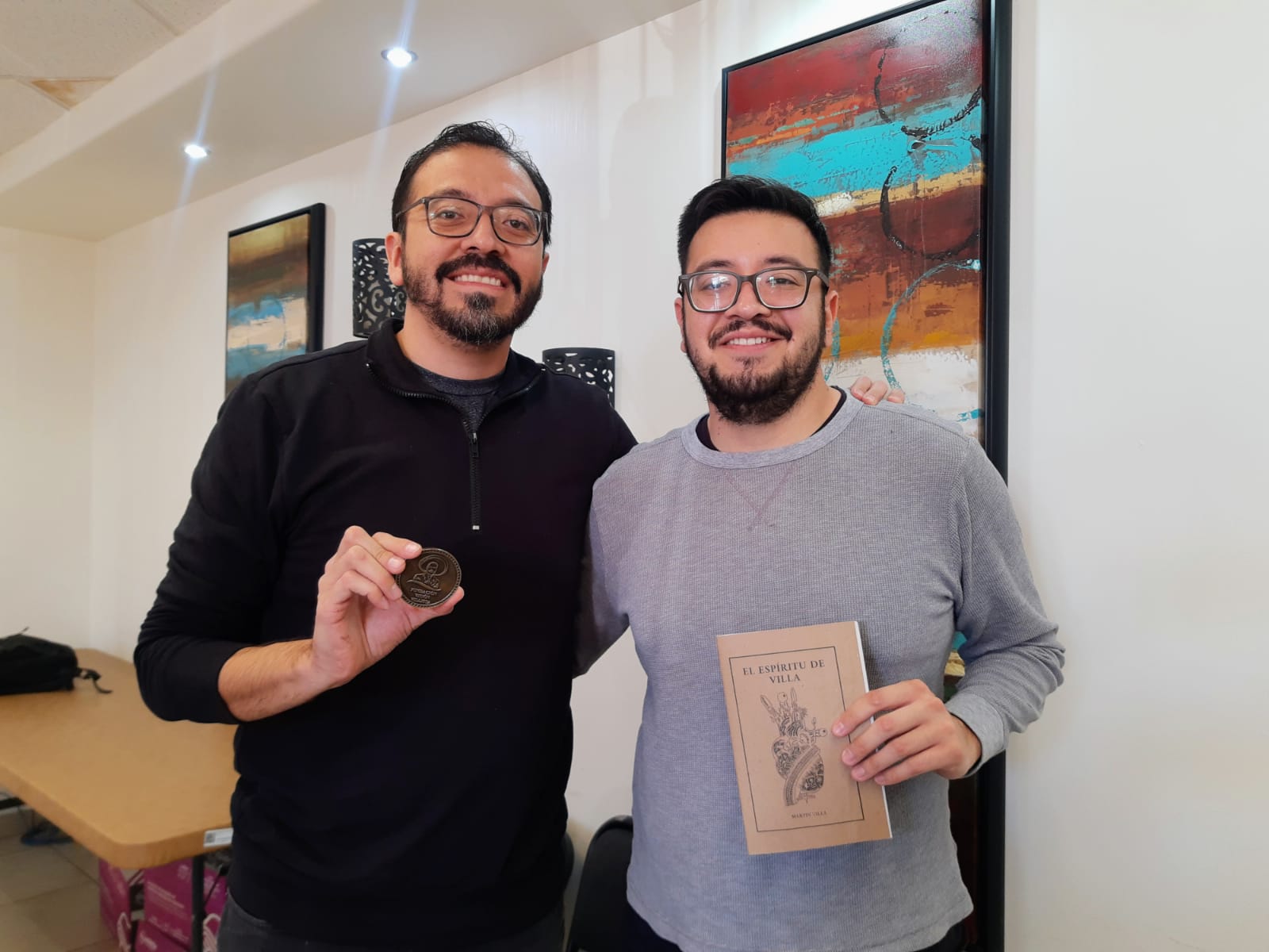 Cuauhtémoc, Chih.- Martín Gustavo y Francisco Villa García, bisnietos del general Francisco Villa, realizan un recorrido por diferentes estados del país, con una exposición fotográfica de 16 cuadros, titulada “El espíritu de Villa Cabalga”, que refleja la vida del “Centauro del Norte”.