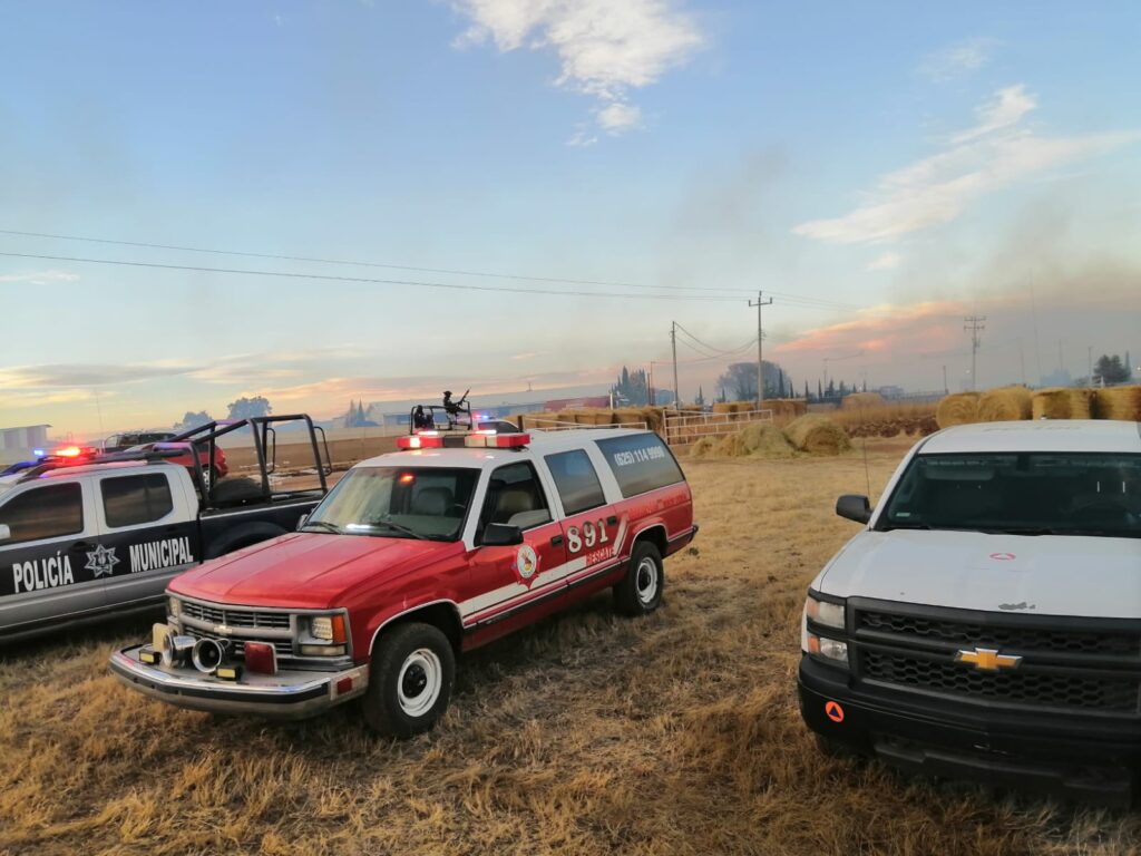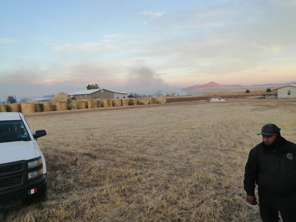 De manera preliminar, el comandante Martínez explicó que se trata de tres incendios que se convirtieron en uno solo, en cada uno de ellos, ardieron más de 200 pacas de pastura seca, formando un gran fuego en esta zona.