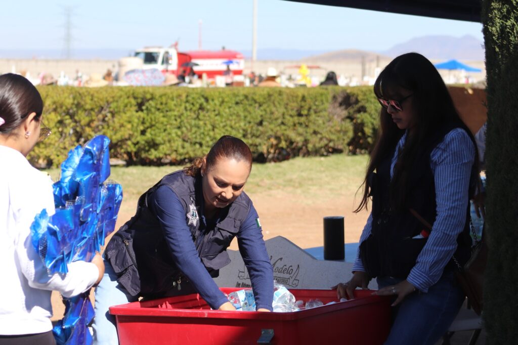 Asimismo, el personal de Justicia Cívica, encabezado por su titular Cecilia Aidé Arrieta Durán, participó activamente en las acciones de proximidad entregando botellas de agua a los visitantes y brindando información sobre la importancia del respeto al reglamento municipal y la sana convivencia durante estas fechas.
