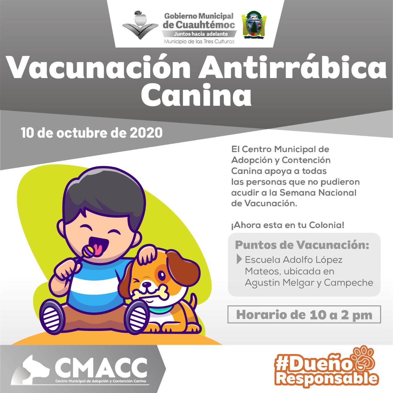El Centro Municipal de Adopción y Contención Canina de Cuauhtémoc invitó a las personas propietarias de mascotas, aprovechar el módulo gratuito de vacunación antirrábica felina y canina que estará disponible este sábado 10 de octubre en la colonia República.