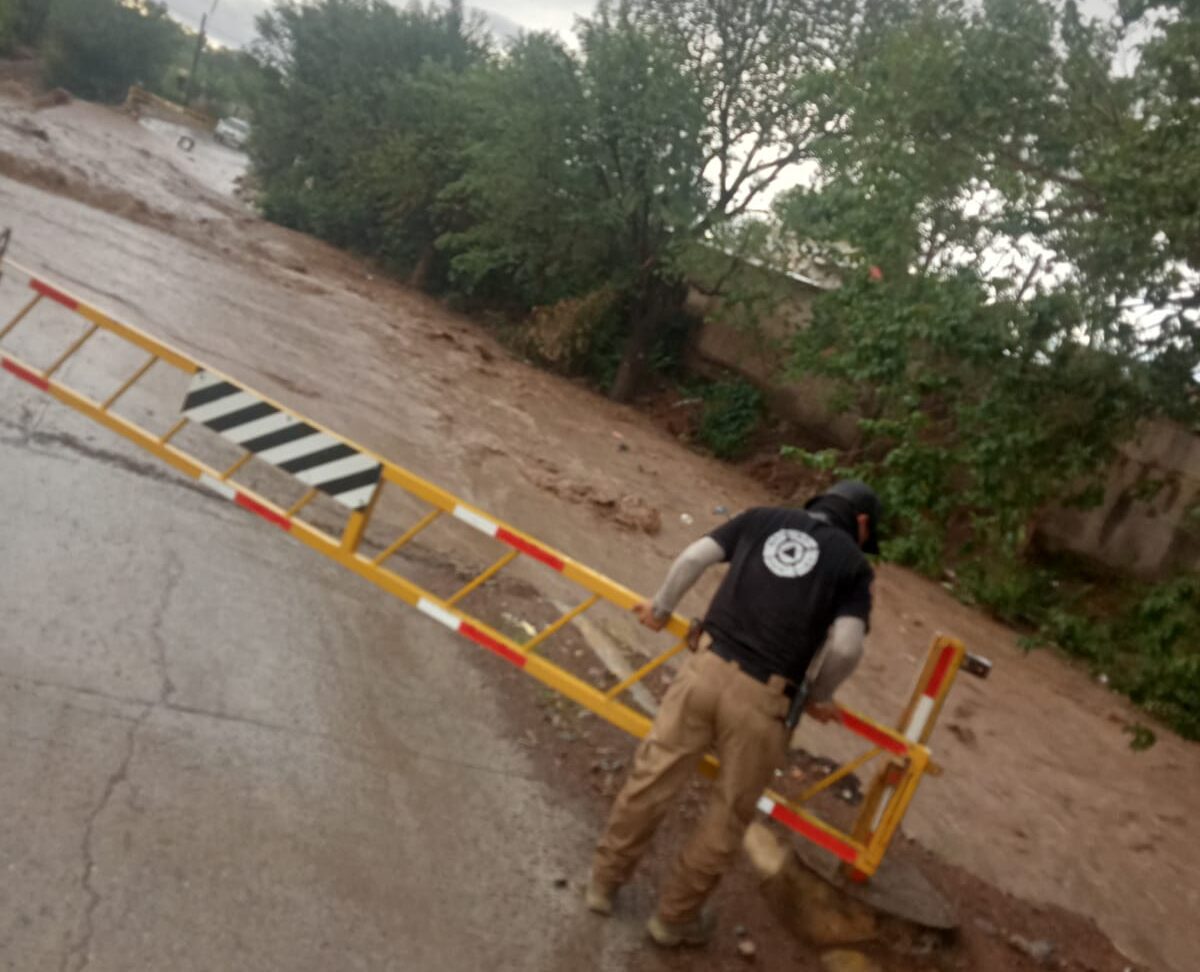 Cuauhtémoc, Chih.-Protección Civil Municipal cerró las plumas en dos cruces y se vigilan los principales afluentes de arroyos*