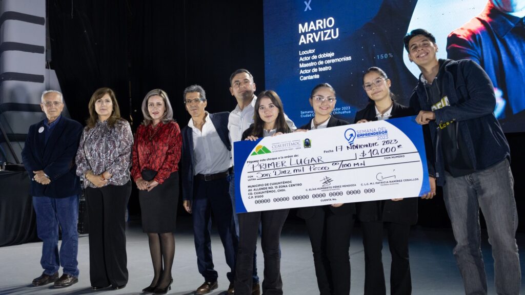 Cd. Cuauhtémoc, Chih.- El locutor y actor de doblaje Mario Arvizu cerró la Semana del Emprendedor 2023, que organizó el Gobierno Municipal de Cuauhtémoc, a través de la Dirección de Fomento Económico.