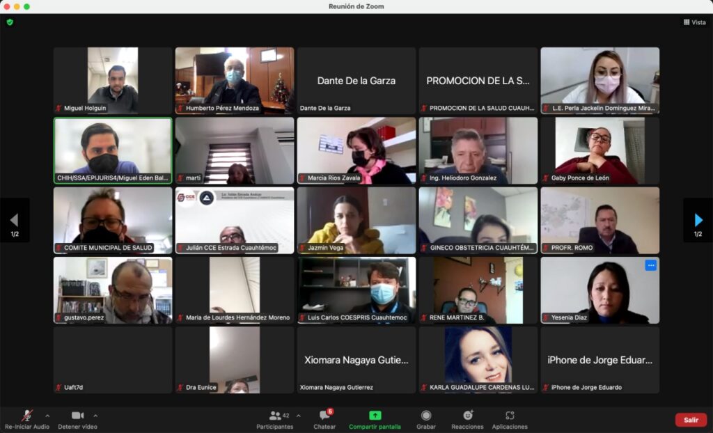 Cuauhtémoc, Chih.- El alcalde Elías Humberto Pérez Mendoza informó que, vía virtual, realizó su primera reunión del año el Comité Municipal de Salud. Entre otros temas, abordaron proyectos que se llevarán a cabo en 2022, enfocados a la mejora de la salud mental, la detección de la tuberculosis, la mejora de atención al adulto mayor, el fenómeno de la sobrepoblación, la vacunación universal, y apoyos diversos para adolescentes, como la prevención en adicciones.