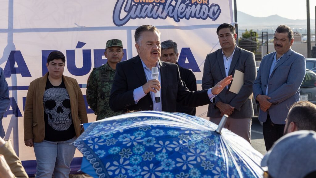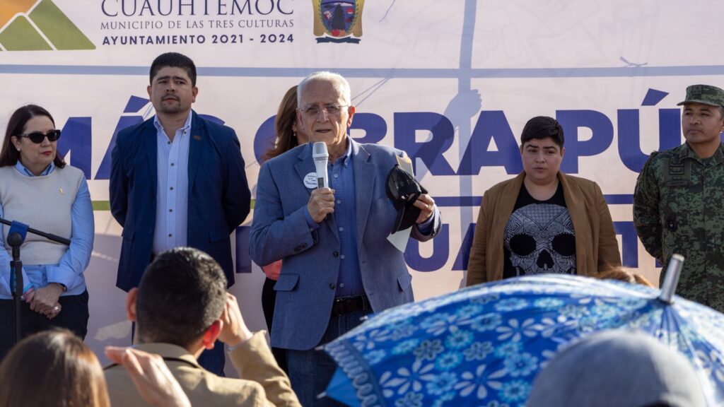 En representación de la gobernadora Maru Campos, el secretario de Comunicaciones y Obras Públicas, Mario Vázquez Robles, subrayó que reconocen el esfuerzo del Alcalde de Cuauhtémoc y el compromiso de su gobierno en obras que no son ocurrencias.