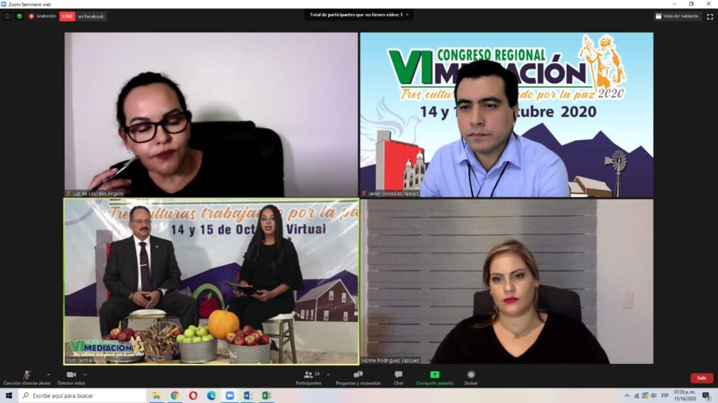 Cuauhtémoc, Chih.-Los trabajos del VI Congreso Regional de Mediación concluyeron con éxito el pasado jueves 15 de octubre, los cuales se desarrollaron de manera virtual del 7 al 13 de octubre en su etapa previa y los días 14 y 15 en su evento magno.