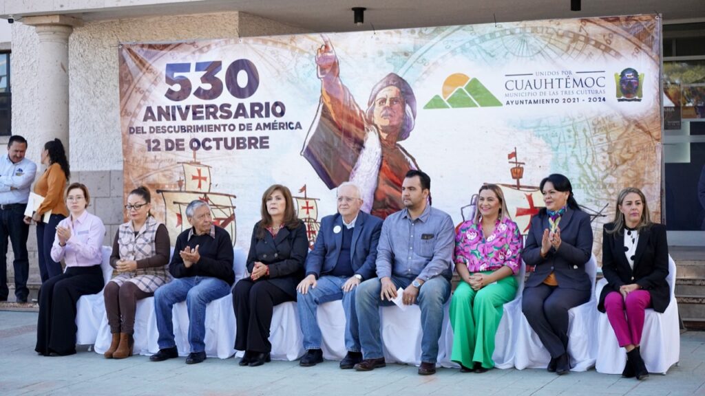 Cd. Cuauhtémoc, Chih.- El presidente municipal Beto Pérez encabezó la ceremonia con motivo del 530 aniversario del Descubrimiento de América, al que asistieron estudiantes, maestros y padres de familia de la primaria Cristóbal Colón.