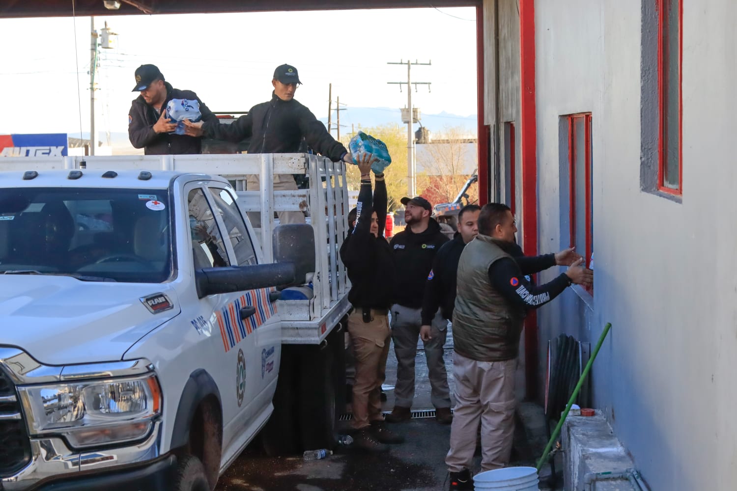 René Martínez Bustamante, comandante de Bomberos, institución que, junto con la Coordinación Municipal de Protección Civil, opera como centro de acopio en la ciudad, apoyó en la entrega de los insumos a la CEPC.