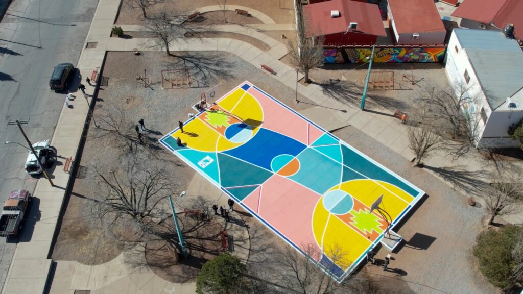 Comenzaron con la cancha que se ubica en un parque de las calles 14 y Ojinaga, donde además pintaron una barda con temática rarámuri, como un homenaje a hermanos de la etnia tarahumara que acuden los domingos a practicar basquetbol.