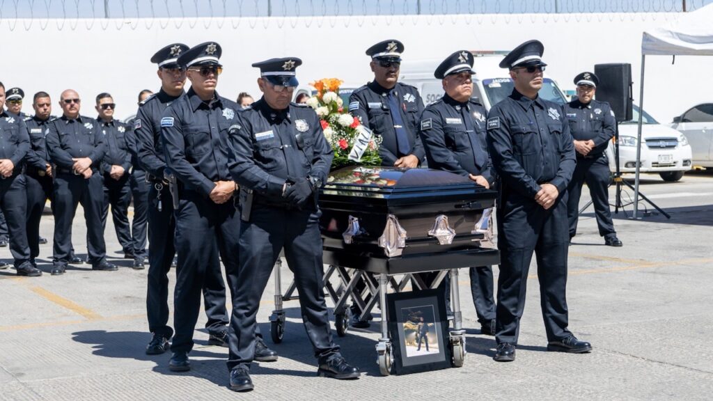 Luego de una ceremonia religiosa, el cuerpo del agente fue llevado a las instalaciones de la delegación de Vialidad, en donde se reunieron familiares, autoridades estatales, municipales, amigos y compañeros de trabajo para despedir al oficial.