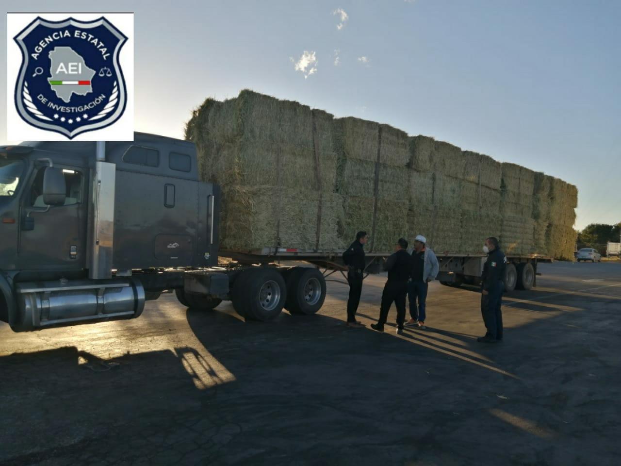 Los elementos policiacos detuvieron a José Luis A. M., de 34 años de edad, conductor de un camión de la marca International, modelo 2007, color gris, con placas de circulación EF 26322 el cual transportaba 46 pacas de avena de 550 kilogramos cada una.
