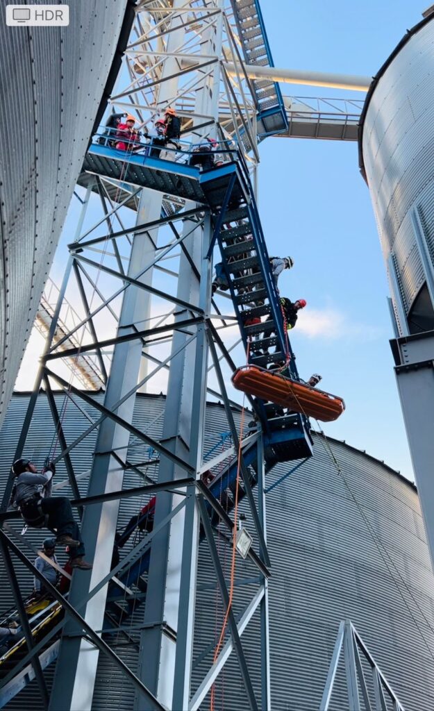Cuauhtémoc, Chih.- Personal de Bomberos de Cuauhtémoc, de las distintas bases de Cruz Roja Mexicana y Nutrigafer, realizan un curso de Rescate Vertical nível 1, el cual incluye como materia previa el rescate en granos con cuerdas, habilidades que servirán para apoyar en caso de potenciales emergencias.