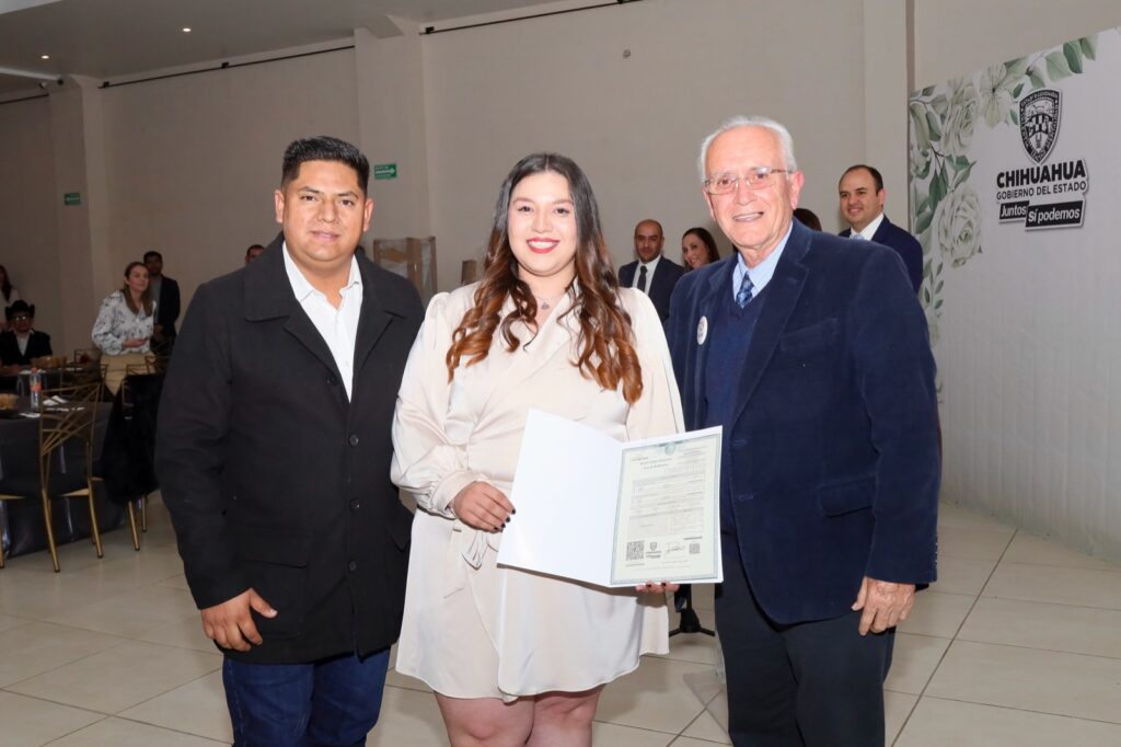 El oficial del Registro Civil en Cuauhtémoc, Alejandro Pérez, felicitó a los contrayentes por la gran decisión de contraer su matrimonio civil, al demostrar compromiso en su relación y fortalecer la figura de la familia. Además, hizo un reconocimiento público a Rossy Enríquez, quien cumplió 50 años de servicio en el Registro Civil, a quien el director general, Rafael Corral, le entregó un reconocimiento.