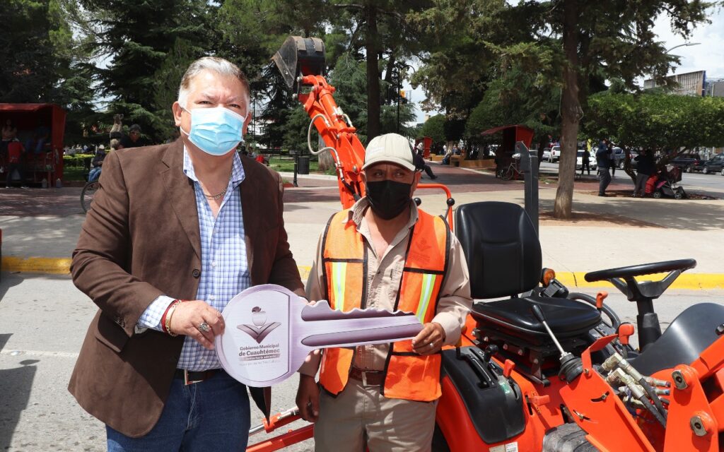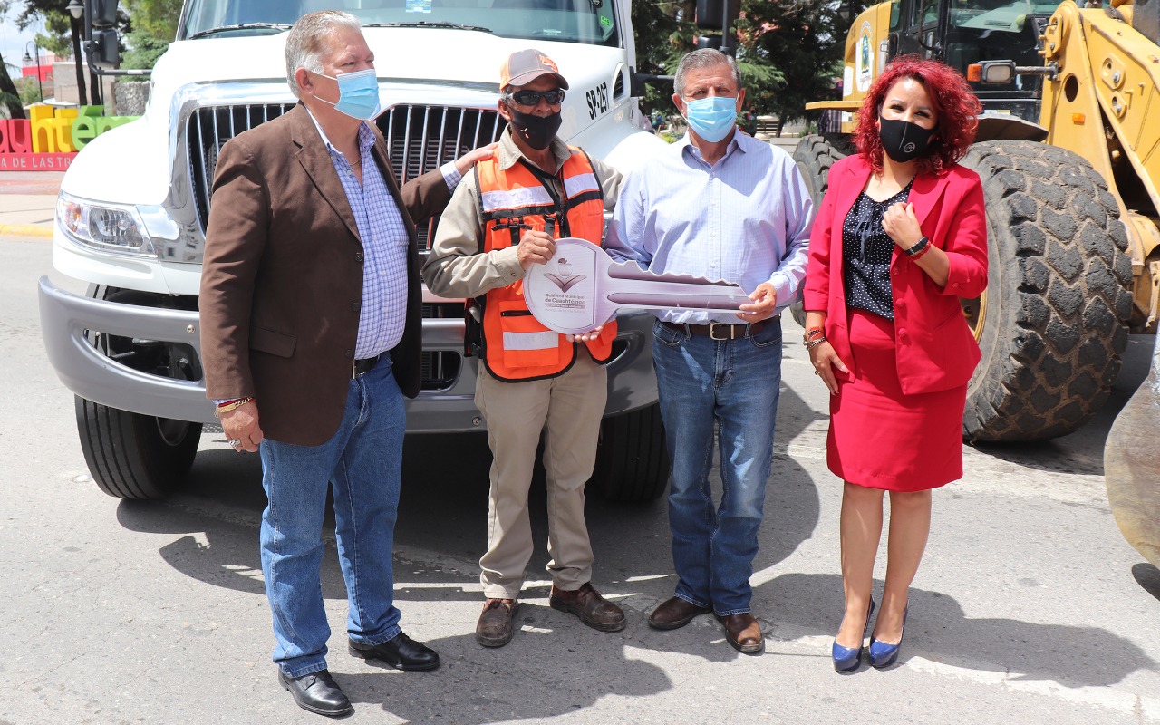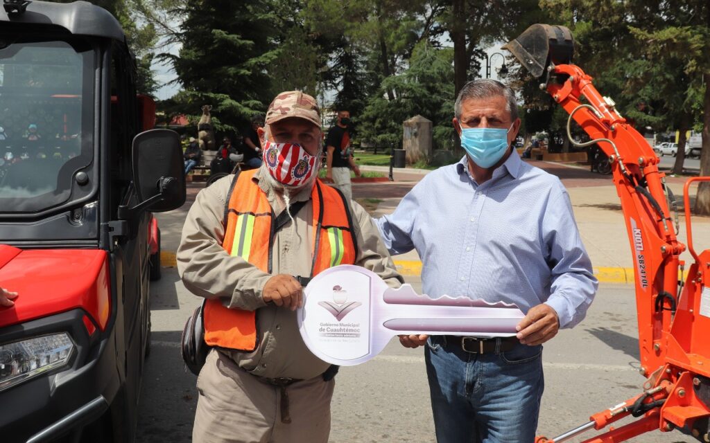 Muestra del trabajo intenso que realiza el Gobierno Municipal de Cuauhtémoc en la recta final de la administración 2018-2021, el Presidente Municipal, Romeo Antonio Morales Esponda, entregó y puso en funcionamiento cinco vehículos pesados que servirán de herramientas para llevar a cabo las tareas de limpia y recolección, así como el mantenimiento de parques, camellones y jardines.