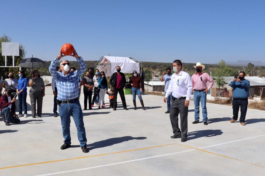 El mandatario municipal en coordinación con el edil seccional de Álvaro Obregón, Carlos Chaparro, entregó a los estudiantes del Telebachillerato 8692 Manuel Bernardo Aguirre, asi como al director del plantel, Gildardo Gutiérrez, la cancha deportiva de basquetbol y voleibol que ayudará a que jóvenes tengan esparcimiento que requieren mediante la práctica deportiva.
