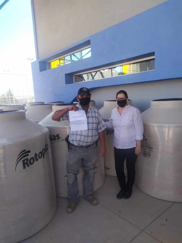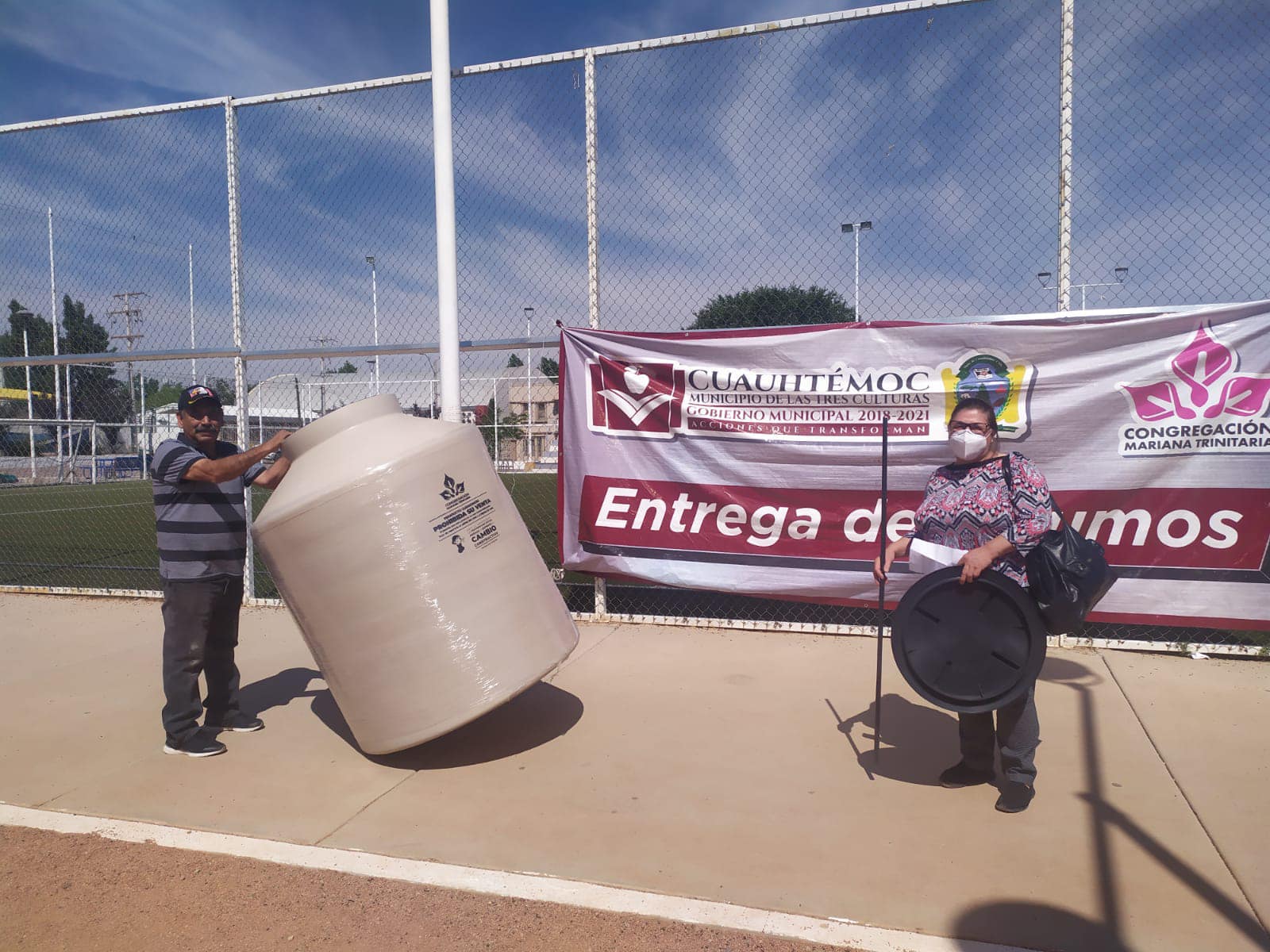 Mediante la gestión realizada con la asociación civil Congregación Mariana Trinitaria, la Dirección de Desarrollo Rural entregó 41 tinacos subsidiados a mismo número de familias originarias de la cabecera municipal de Cuauhtémoc, así como de los ejidos Loma Pelona, Nuevo Zaragoza y Zamaloapan.