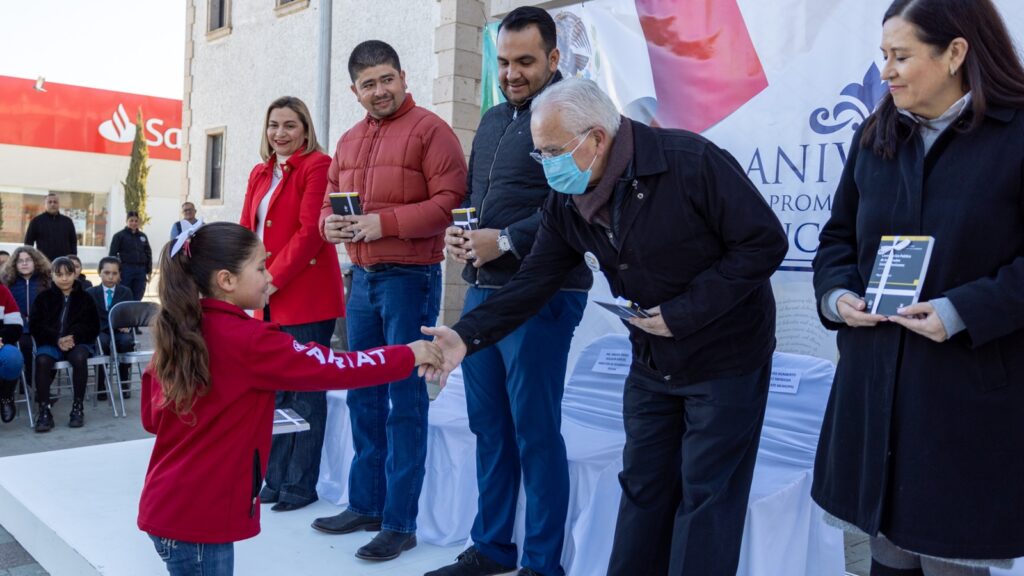 El evento se llevó a cabo en la explanada de la Presidencia Municipal a donde acudieron estudiantes de las escuelas primarias Águila Azteca, José María Morelos, Constituyentes y Ford 113, que participaron en el concurso “Conociendo la Constitución de 1917”.