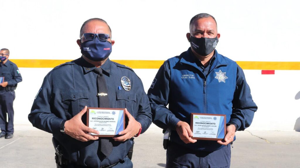 En la ceremonia estuvieron presentes la Síndica Municipal, Verónica Escalante Romero, así como el regidor de Seguridad Pública, Omar Ricardo Morales Iglesias y el director administrativo de la DSPVM, Alejandro Pañeda Segura, quienes hicieron la entrega de los reconocimientos a: