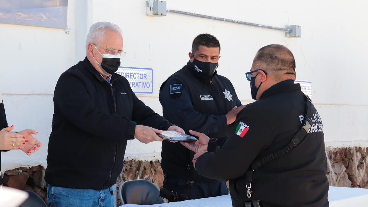 Cuauhtémoc, Chih.- Elementos de la Dirección de Seguridad Pública y Vialidad Municipal de Cuauhtémoc, con 20 años de servicio o más a la comunidad, recibieron un reconocimiento por parte de la administración, por su entrega y valor. El alcalde Humberto Pérez Mendoza encabezó la entrega en la que se distinguió a 34 efectivos de la corporación y al Grupo K9.