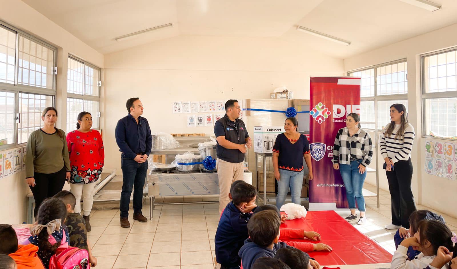 Cd. Cuauhtémoc, Chih.- El DIF Municipal y el DIF Estatal realizaron la entrega de equipamiento para una cocina comedor del preescolar ubicado en la colonia Tarahumara.