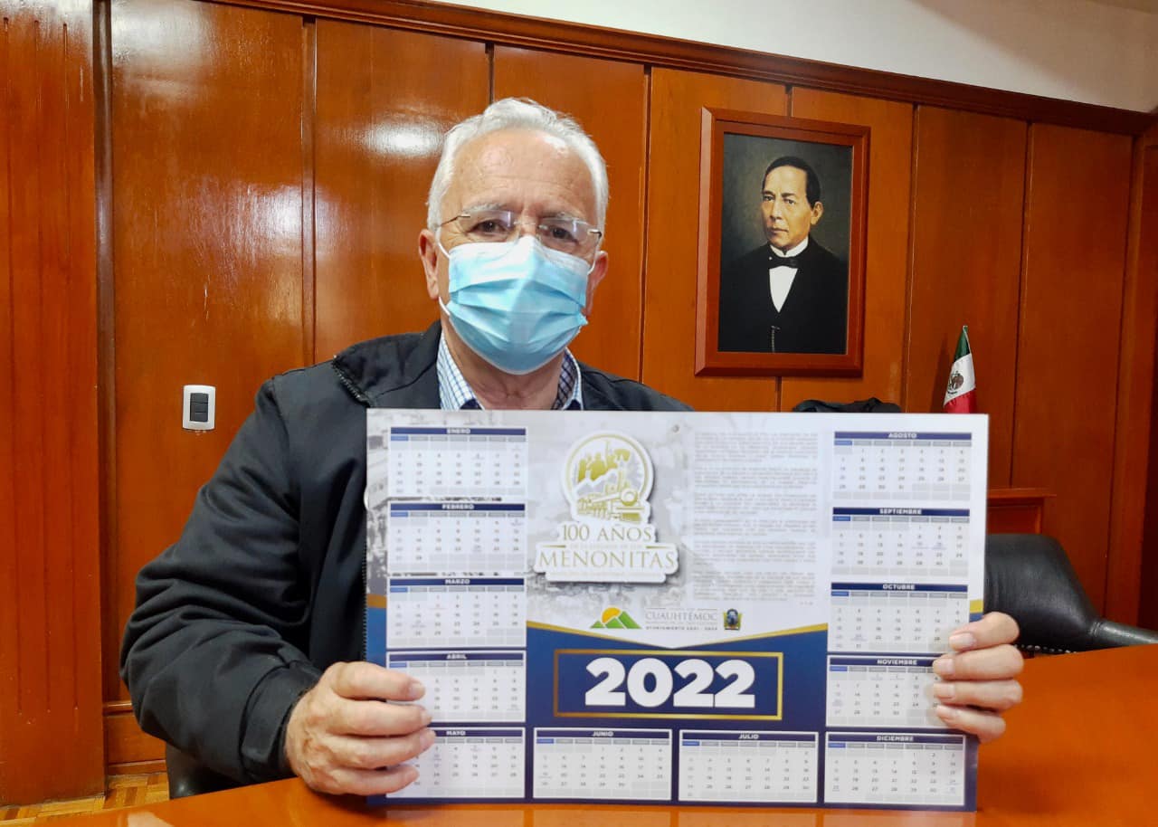 El Municipio imprimió calendarios 2022 que incluyen dicho logotipo, en apoyo al comité que se conformó en la comunidad menonita y del que forma parte este Gobierno, mismo que se encargará de la organización de los festejos.